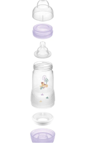- Tetina con forma simétrica, plana y suave. Su forma imita el pezón materno para una experiencia familiar a la lactancia materna.