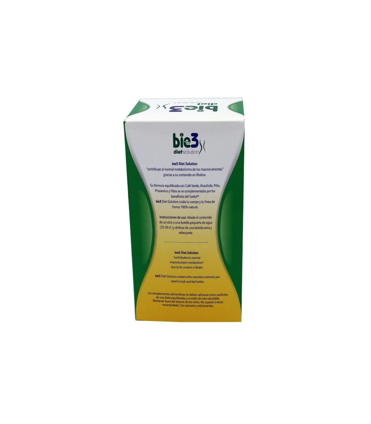 Bie3 Diet Solution actúa como un coadyuvante fundamental en el control y la pérdida de peso, como parte de una dieta controlada, ya que posee acción diurética, quema grasa, estimulante del metabolismo, reduce la absorción de hidratos de carbono y evita el estreñimiento.