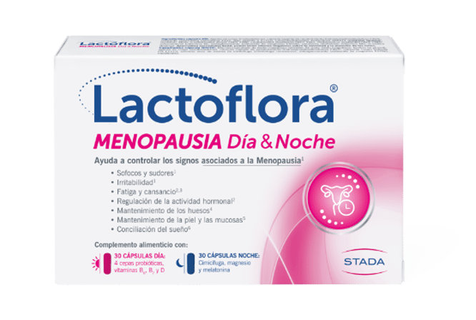 Lactoflora Menopausia Día & Noche es un complemento alimenticio formulado específicamente para la etapa de la menopausia y perimenopausia, aportando alivio confort durante este periodo de cambio.