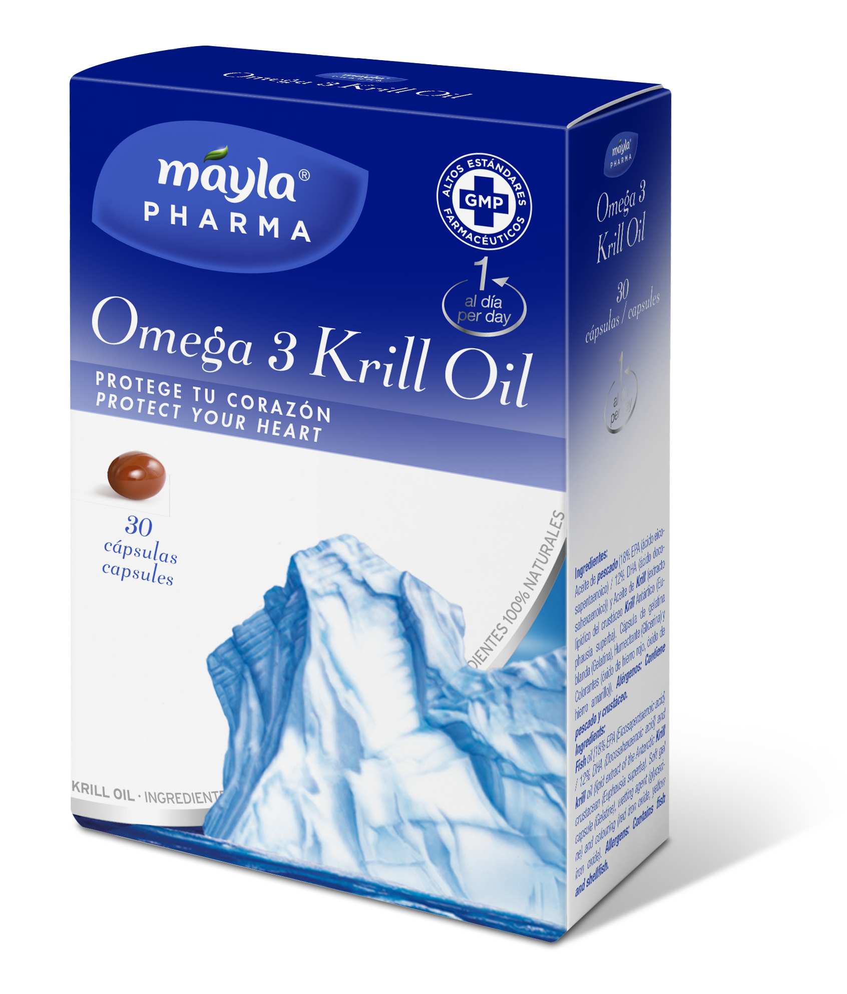 Si has respondido que sí a algunas de estas preguntas desde Máyla® Pharma te recomendamos OMEGA 3 KRILL OIL, un producto a base de Aceite de Krill. El Krill son unos minúsculos crustáceos que son fuente natural de ácidos grasos no saturados Omega-3: EPA y DHA, así como de antioxidantes solubles en lípidos que ayudan al mantenimiento de un corazón sano y contribuyen al mantenimiento de una óptima función cerebral y cardíaca