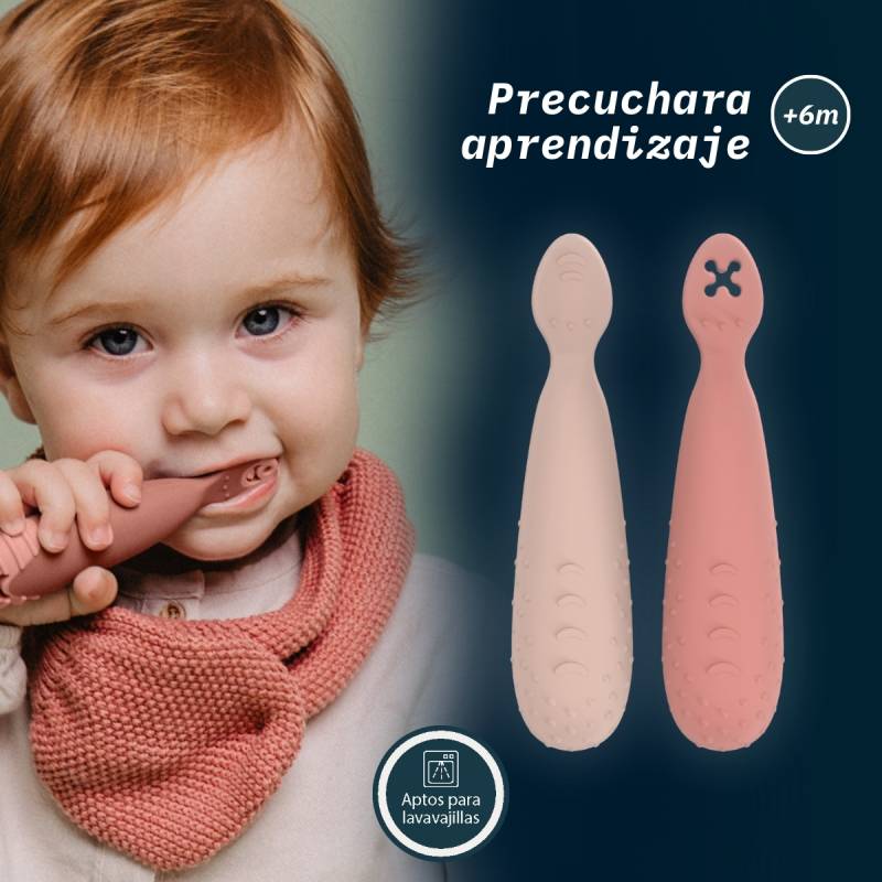 La forma simétrica de los mangos permite el uso con ambas manos, sin necesidad de rotar la muñeca, convirtiendo esas pre-cucharas en el complemento ideal para iniciarse en el método BLW.
