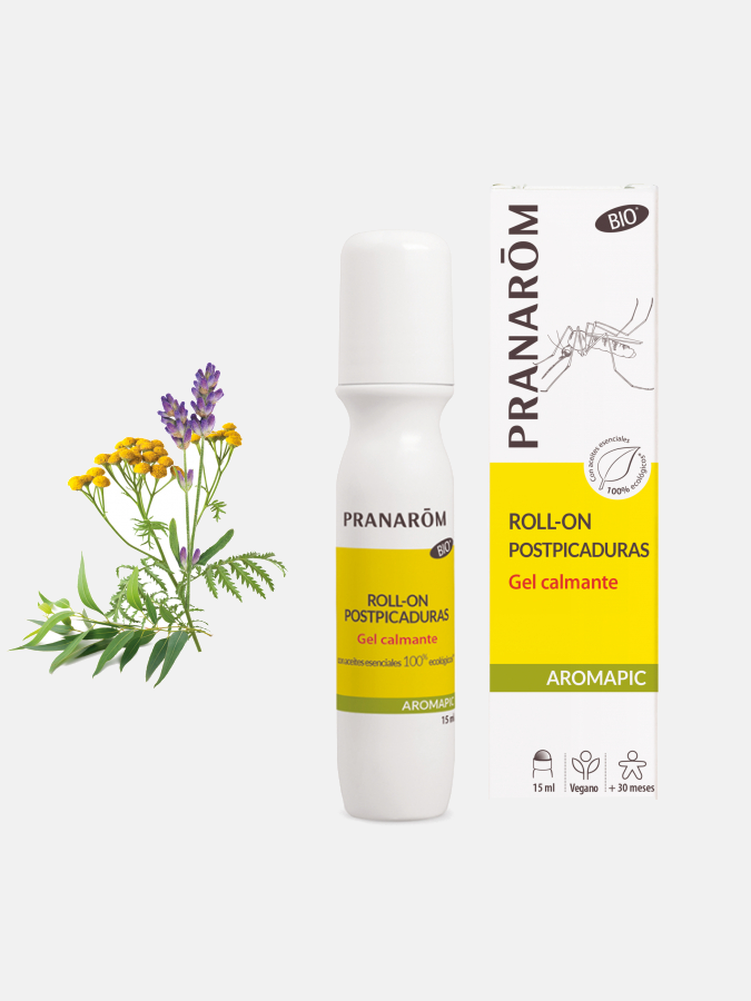 En caso de picadura, el gel calmante alivia inmediatamente el picor. Los aceites esenciales de espliego macho, de manzanilla romana, de katrafay, de menta de campo y de hierba lombriguera además del aceite vegetal de caléndula suman sus virtudes apaciguantes y calmantes; en un roll-on, este gel es práctico y fácil de llevar.