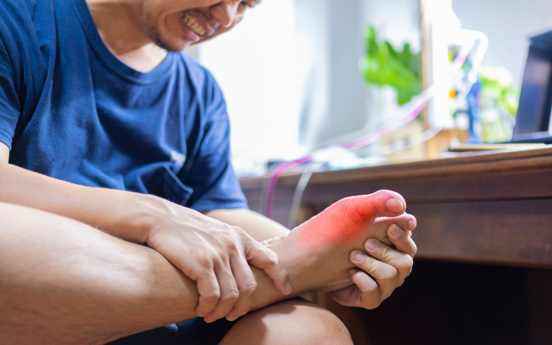 Estos cristales son los responsables de los brotes agudos de dolor intenso, inflamación, enrojecimiento y calor articular, que suelen aparecer de forma brusca y con frecuencia afectan al primer dedo del pie, aunque también pueden darse en tobillos, rodillas, muñecas o codos.